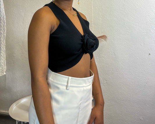 TOP NOIR NOEUD EN FLEUR DEVANT